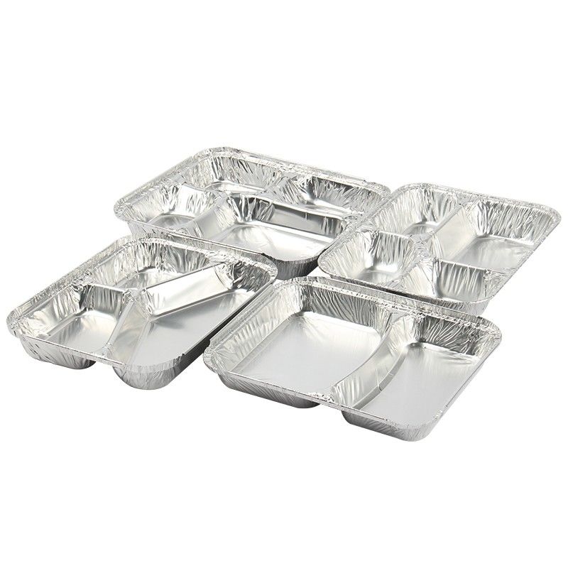 Caja de comida de aluminio de 800ml 230mm*175mm*38mm Contenedor mayorista bandeja cuadrada cacerolas de alta calidad 2 rejilla